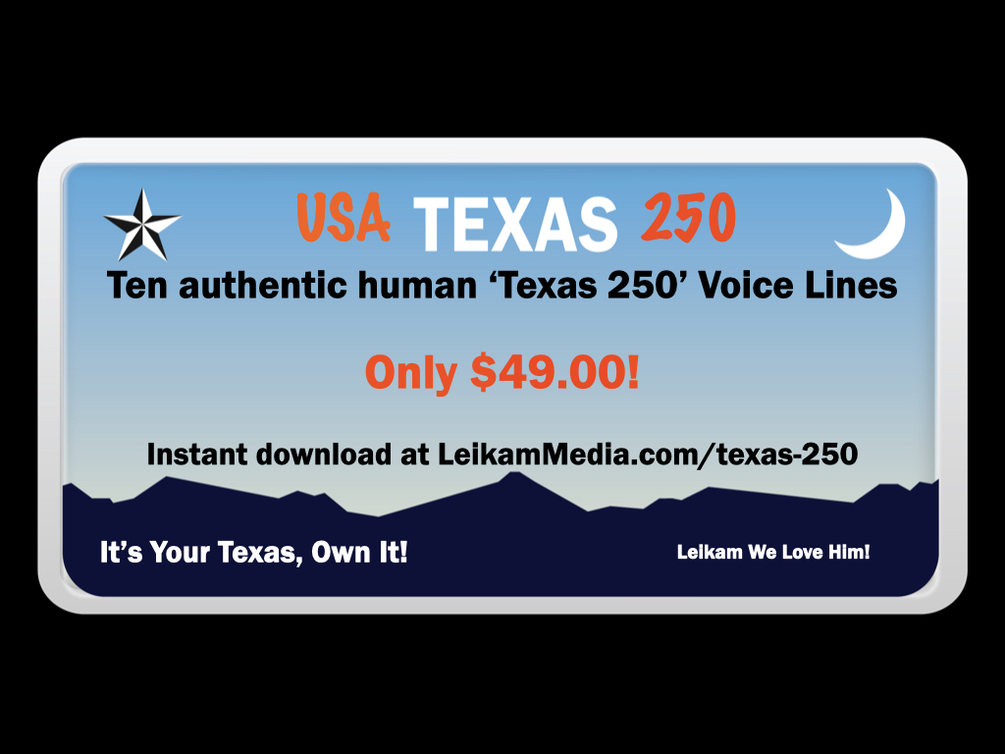 Authentic-Texas voice lines and music beds recorded by broadcast legend Eric Leikam, Texas Indy Musician, and the voice you hear on iHeart Radio’s WOAI and 24/7 News.